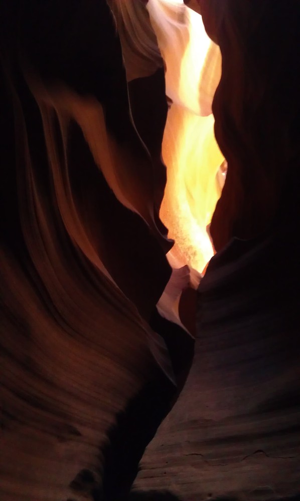 Antelope Canyon is a slot canyon created by flood waters coming into one major wash from hundreds of miles away. The canyon is incredibly narrow and made of soft Navajo sandstone making it constantly changing. Just three days ago the floor of the canyon was three feet above where it was today. Over the coming months, smaller storms will deposit more sand and elevate the floor again.