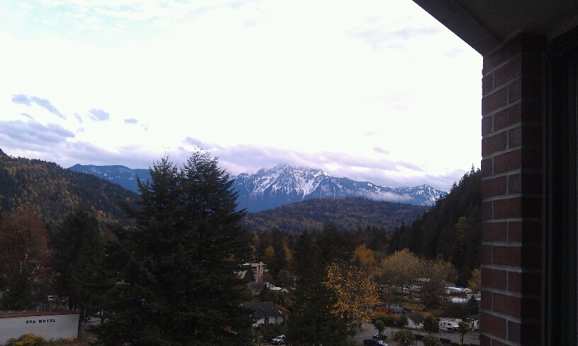 This is the view into the mountains from my room at the Harrison Hot Springs Resort and Spa in British Columbia. I am here doing my duty as a member of the Board of Directors for the Institute for Professional Environmental Practice. I felt obligated to make the trip, and wow, it was worth it. It is absolutely gorgeous here. More pictures tomorrow.