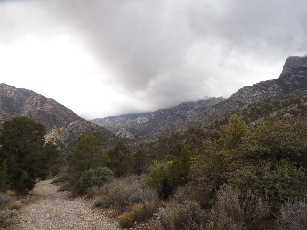 On the drive out to Red Rock we were watching the sun dapple the mountains through the clouds, and admiring how beautiful the mountains were. The closer we got we began to realize that the tops of some of the mountains were actually in the clouds, which was gorgeous, but made us happy we hadn’t been planning on climbing very high.