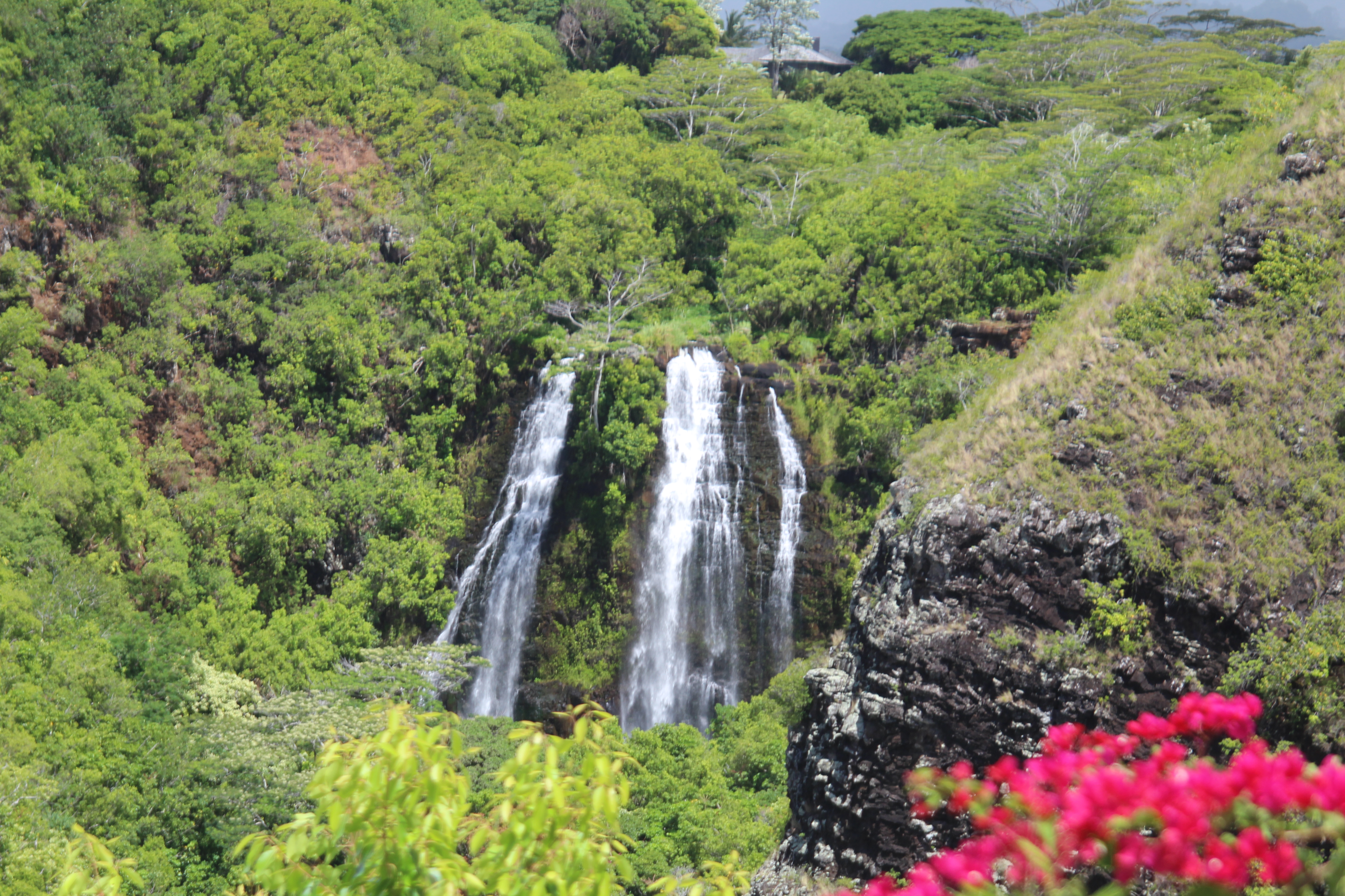 Opeakaa Falls is located near the Wailua River, right near where we went kayaking a few days ago. The falls are beautiful and visible from the road. We were all lazy and tired today, so a short drive to a photo op sounded like a great idea.