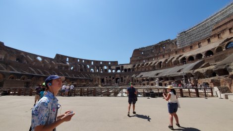 After getting cleaned up and fighting our way back through the crowds, we found Michelle and Rylie at Saint Peter’s Basilica and promptly headed for a cab to get back to our apartment to change out of long pants and shoulder covering attire for the ladies so we could head to an outdoor tour of the Roman Forum, Palantine Hill, Circus Maximus, and the Coloseum. Afterall, it was only noon…