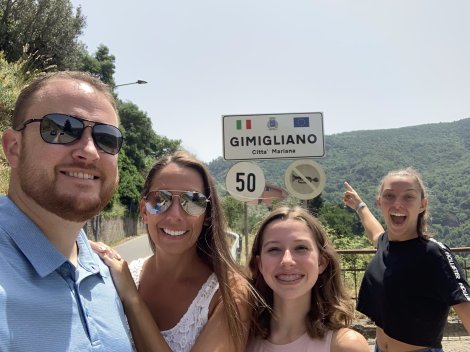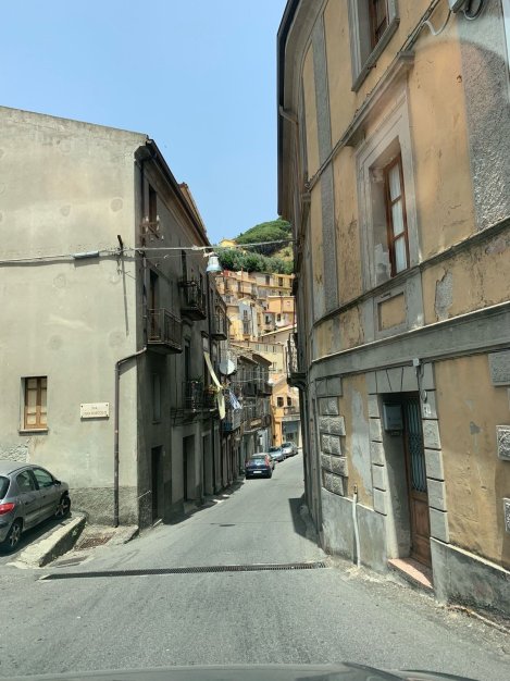 The whole reason for our trip to Catanzaro was to see a small village called Gimigliano, the hometown of Michelle’s grandfather who emigrated to the US at 14 years old. Being all the way over here made it hard to contemplate not stopping.This morning we slept in a little, and enjoyed the breakfast buffet at the hotel. Chloe has really taken to Europe because of the Nutella. She eats it at home, but is amused by how prevalent it is here. This morning she frosted a Nutella croissant with a whole package of Nutella and proceeded to eat it while we all looked on in awe and horror. Rylie meantime found a particular juice she really liked and when questioned told us it was “Ace Juice.” Of course I told her it was pronounced “Ass Juice.” I’m still laughing about it.The language barrier is getting easier, but the learning curve is steep here as very few people speak English. (I know why, our TV only gets three english channels: CNN, Fox News, and Fox Business. Who could watch any of that long enough to learn anything?) For some reason people keep speaking to Rylie and me in Spanish. Which is definitely better for them…The drive out of Catanzaro Lido wasn’t bad save for the seemingly endless string of traffic circles. They’re better for the flow of traffic, but each I got into one ot seemed like someone was ringing the bell for a WWE death match. No accidents that I saw and all ended well.As we moved through the province of Catanzaro and toward Gimigliano we covered highway, country road, and village main drag, often changing second to second. At least it felt that way. The last village before Gimigliano, Cavora, was my first introduction to a less than two lane road that goes in both directions. The apparent solution here is maintaining speed without flinching and that somehow it all will work out. Blind hairpin turn after blind regular turn, and again, all was fine. As we approached our destination I was feeling more confident. Michelle and Chloe were just feeling more nauseous.Gimigliano is believed to have been settled in the late 800’s by refugees from the coast looking to find homes away from the Muslims who were beginning gather power in Southern Italy. In the 1400’s then victim of the Feudal system, the village was sold at least twice. It gained freedom when feuldalism was abolished in 1806 only to be set fire to in 1807 by Giuseppe Boneparte’s soldiers. It was since rebuilt and is currently home to roughly 3400 people, less than the population of Rylie’s high school.