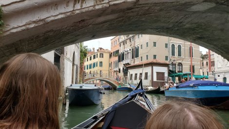Along our route he made a well planned stop at an ATM as I wasn’t aware that gondoliers are paid only in cash and at the start of the trip. Apparently I passed his credit check as he offered to take me to get cash. Really it was in his best interest. Awkward moment aside, the ride was great. He was masterful at moving through the canals and avoiding boat and gondola traffic. He even explained to us that the boats are shorter on the right side to allow the paddle on the right without pushing the boat offline. I never knew that, but it was easy to see from inside the boat. Anyone who has paddled s canoe or kayak on only one side gets why reshaping the boat is important.