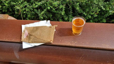 The highlight of the day seems to have been Thunder Mountain Railroad. It is faster and longer than either of its US counterparts and WAY more fun. It was ridden multiple times. A close second for me what that it was a celebration of international food and wine which meant I spent my morning eating and drinking my way through the Antilles, Spain, Greece, and various regions of France. A raclette crepe (ham, cheese, mushrooms) and cider made for an early lunch.