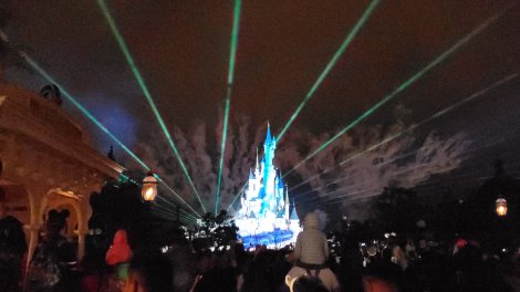 The evening show is quite impressive. We watched from a ways back because we had a driver coming to get us and we didn’t want to miss him. But we could see and hear fine. For me, the highlight was when the entire castle turned Star Wars and then music and fireworks followed suit. Contrary to my kids’ thoughts, my favorite part of the show was not when it looked like the castle was erupting into flames.