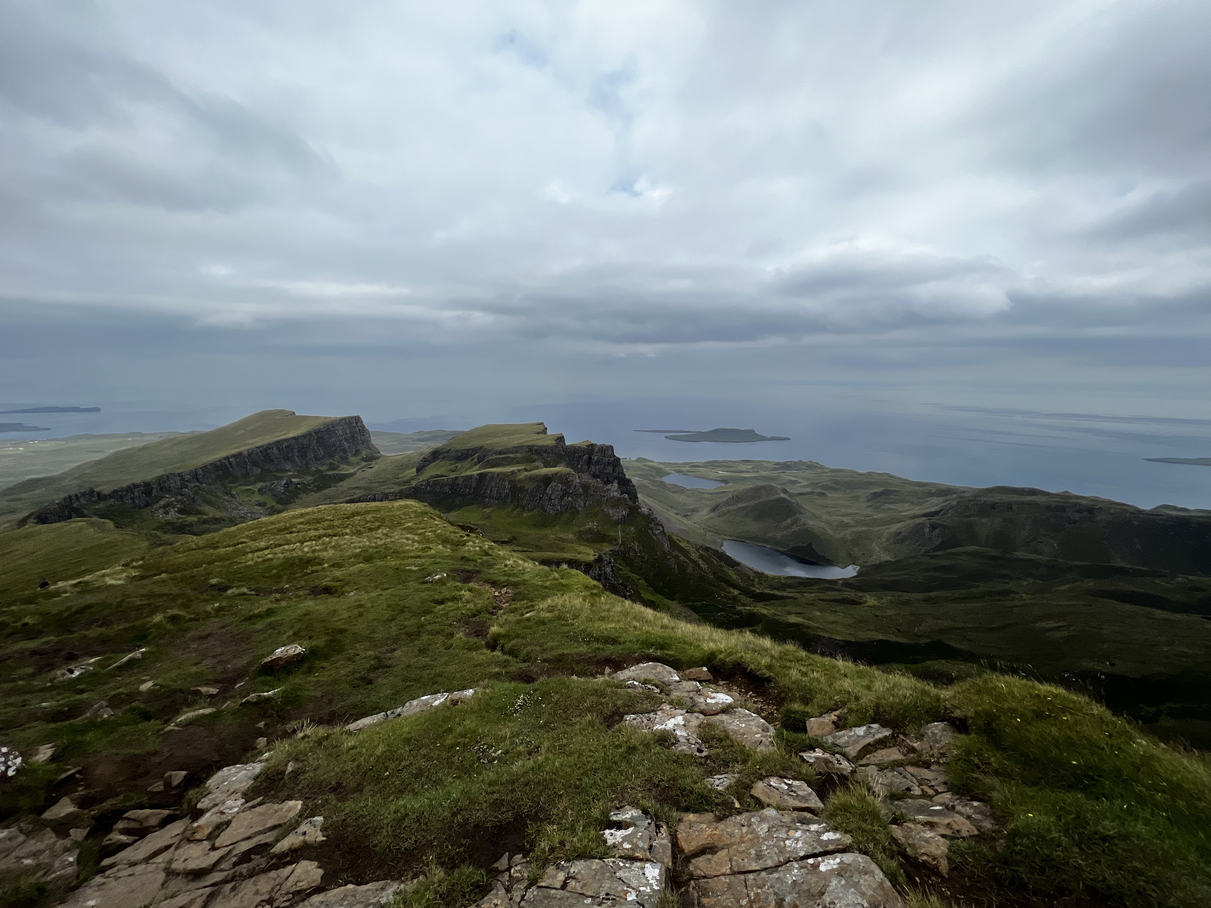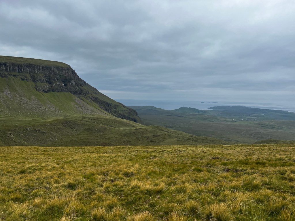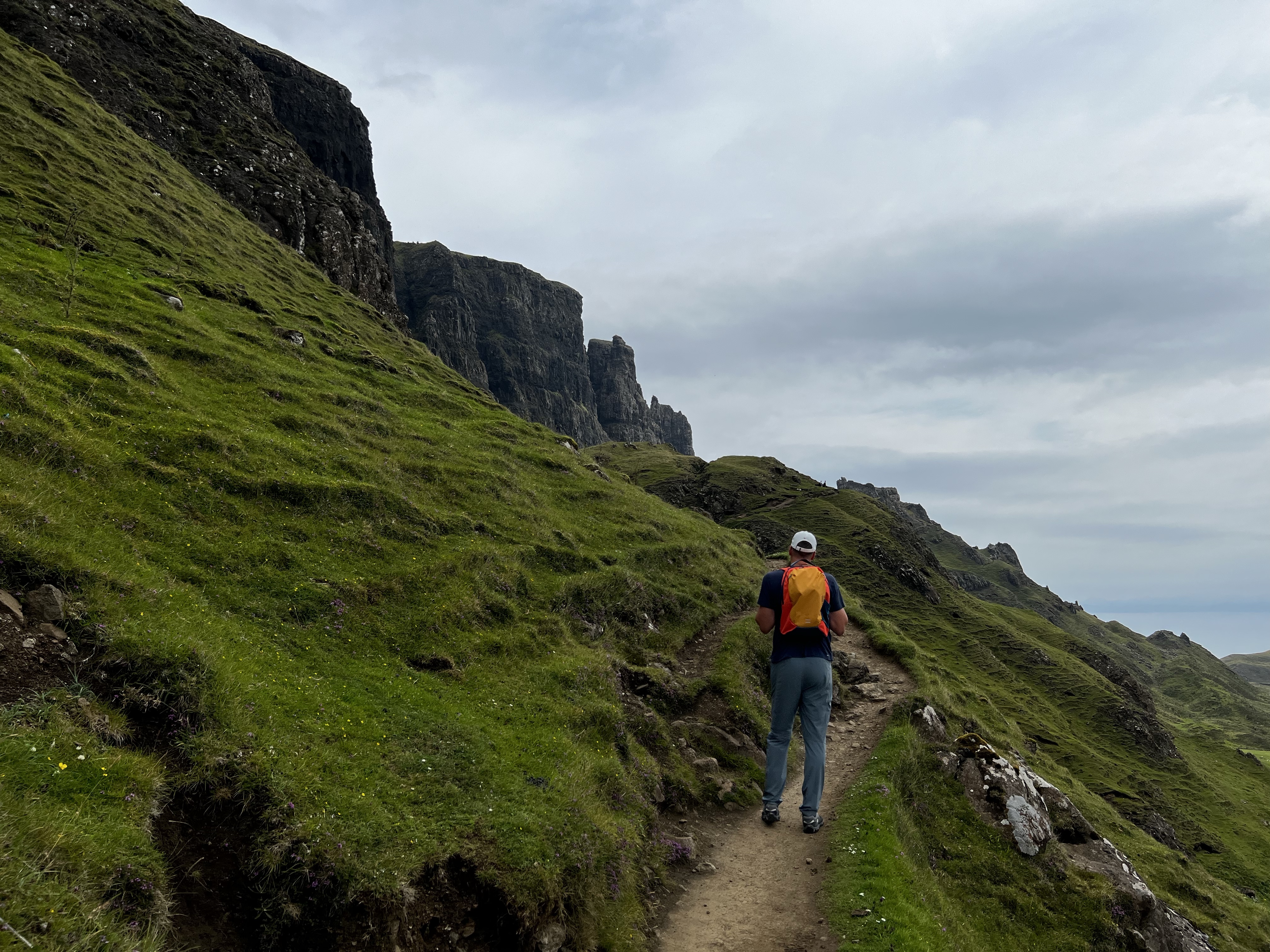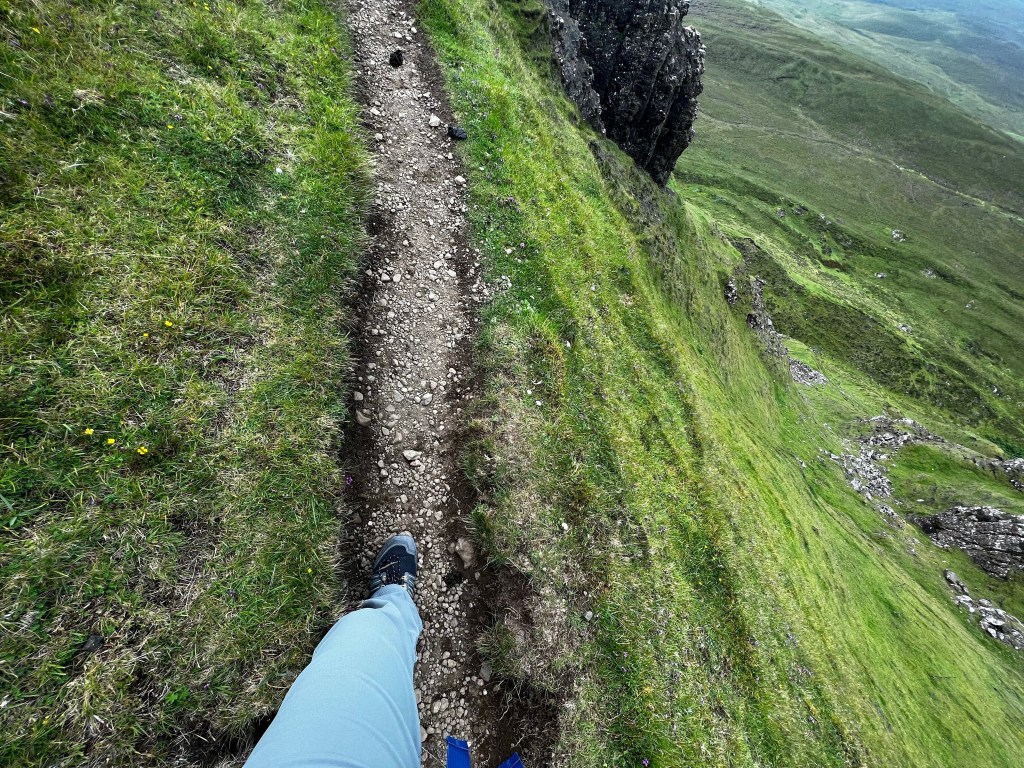 We chose to do a hike that’s a circuit of a famous rock formation called the Quiraing. It’s about an hour and fifteen minutes from our house and we knew that we might not be up the earliest today as we are still adjusting to the time. It was marked as a moderate route and we had planned on making a slightly longer go of it than the map indicated. GPS route downloaded, rain gear packed, snacks and water. Ready to go.