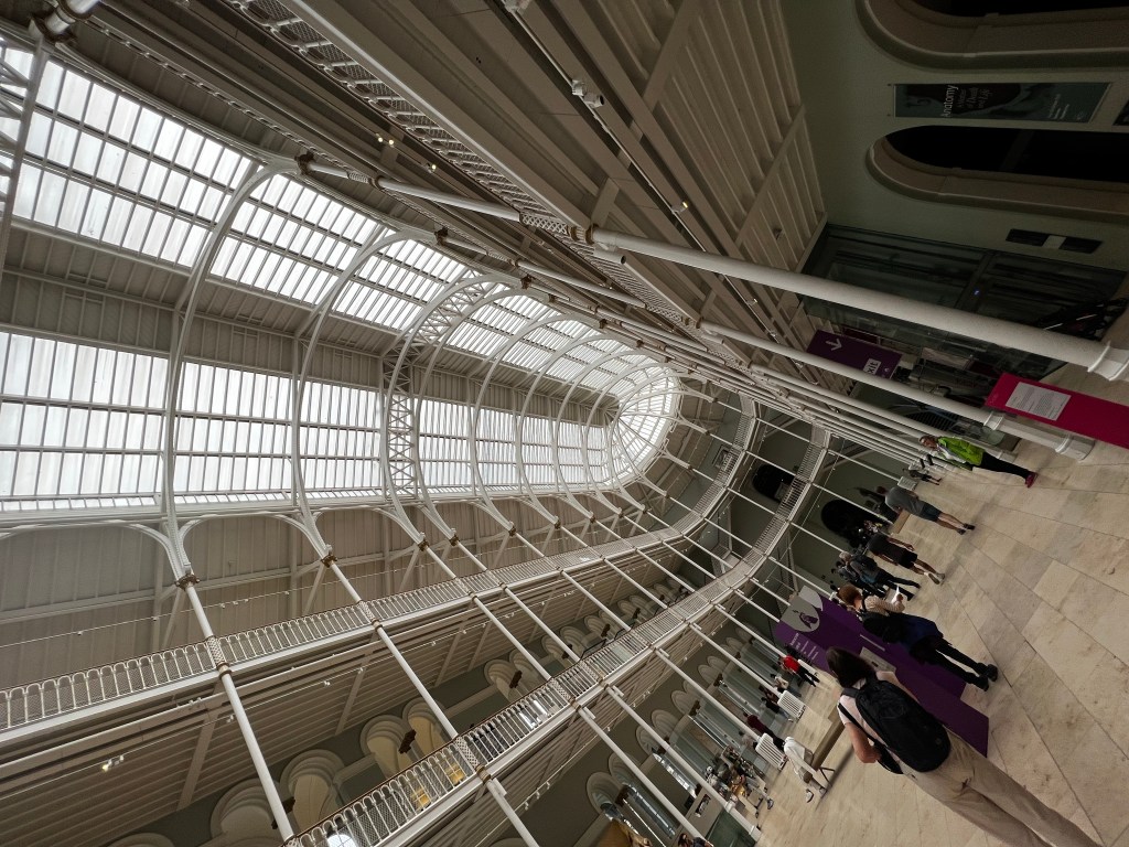 We decided to walk the mile from our Airbnb to the National Museum of Scotland, which is a remarkable building. It blends perfectly with the ancient architecture on the outside, but inside it flows in and out of design type depending on the exhibit. The entryway is a gorgeous open area that really struck us before we started exploring the exhibits.