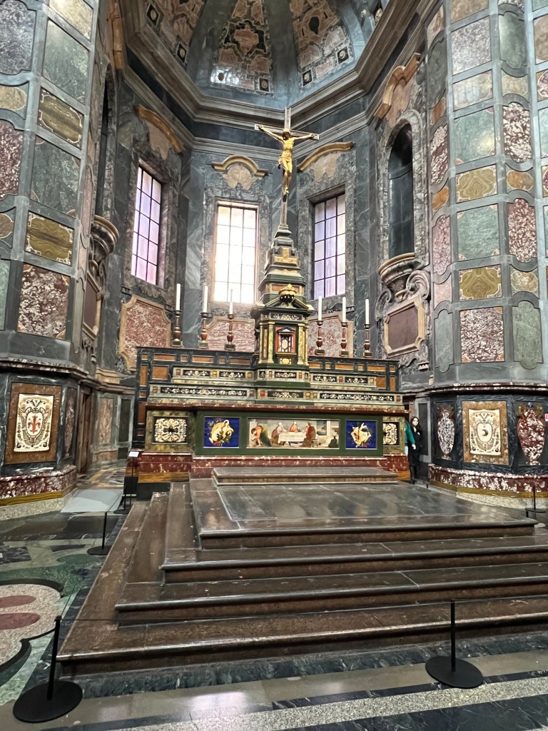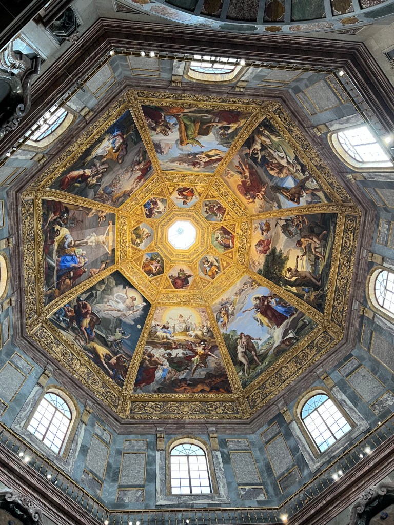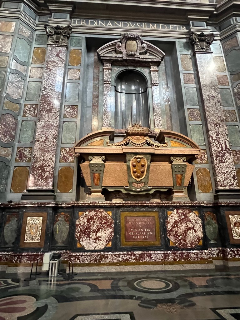 First stop was a skip the line tour of the Medici Chapels. It is a beautiful museum which includes the tombs of some of the most powerful members of the Medici family. The stone work and sarcophagi are incredibly detailed stone and metalwork. The design dates back to the mid-sixteenth century and the floor was finally finished in 1962. The family who essentially bankrolled much of the Renaissance definitely left a lasting picture of their wealth.