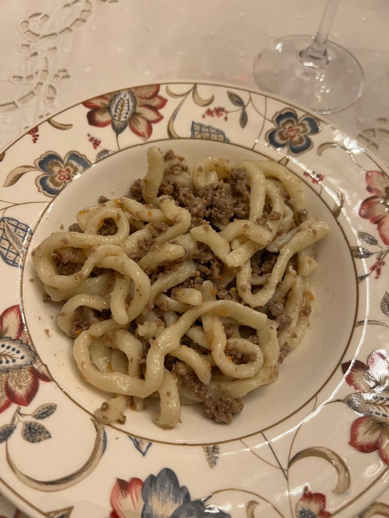 Finally our host, and her amazing mom, Alma, made us the most amazing dinner. Traditional chicken liver crostini, pici with a beef ragu, and a rack of pork ribs with sliced loin. I’m stuffed. They even made a a vegetarian version for Michelle. Of course we enjoyed a couple bottles of wine with dinner as well.