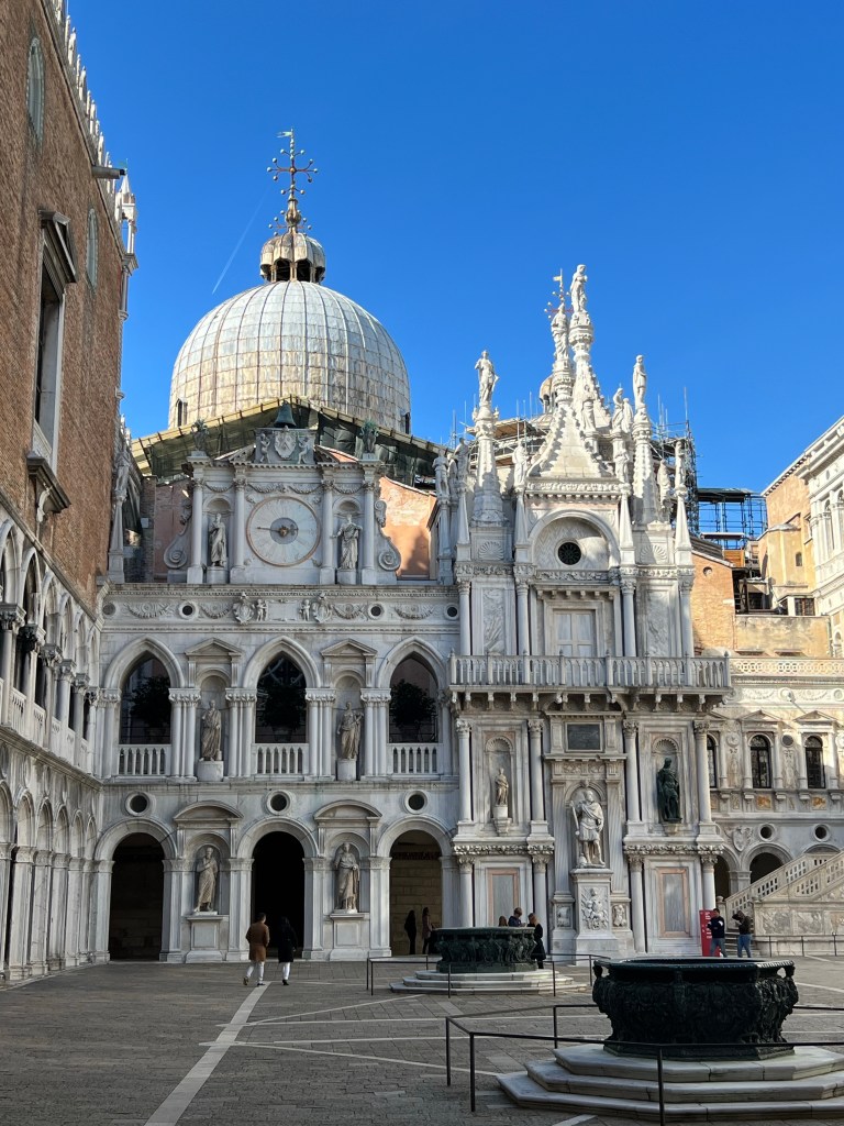 A fast water taxi ride back to Venice gave us enough time to tour Doge Palace. The Doge were the rulers of Venice during its peak, when it was it own country. Seeing the upstairs chambers where business was conducted created a stark juxtaposition with the prisons on the lower levels. With power comes the ability to punish, in fact they are famous for it.