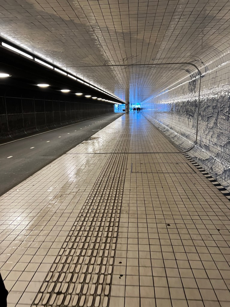 The tunnel was wet porcelain tile and played tricks on your mind. Not cool.
