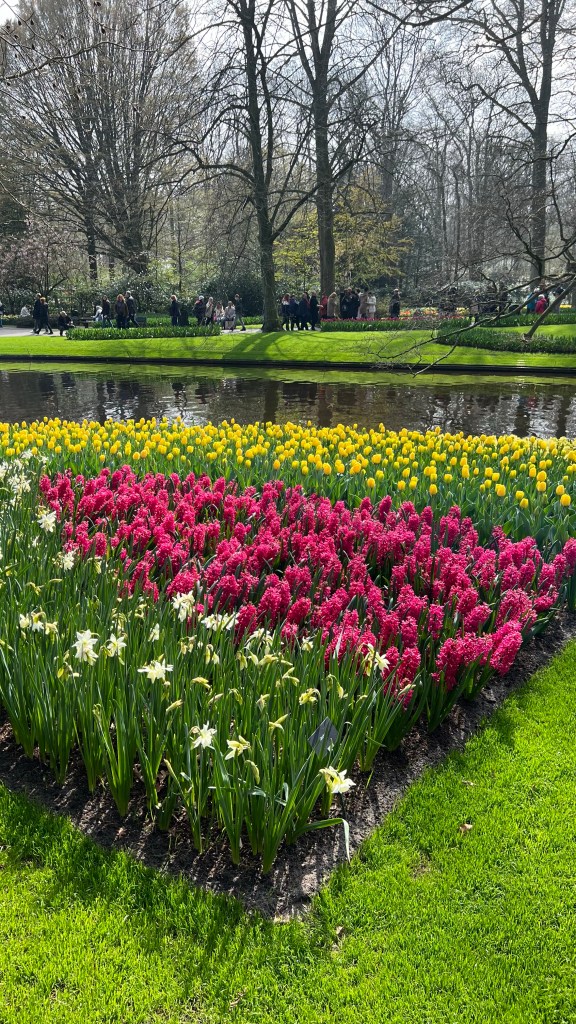 From the farm we made the short drive, by distance, to wait in a long line of traffic and get into Keukenhof. Imagine if Disney had a resort for just flowers and decorative presentations. Then imagine it was in Lisse, Netherlands. And finally, imagine more tour buses than you’ve ever seen in one place. All of those things at once. That is Keukenhof.