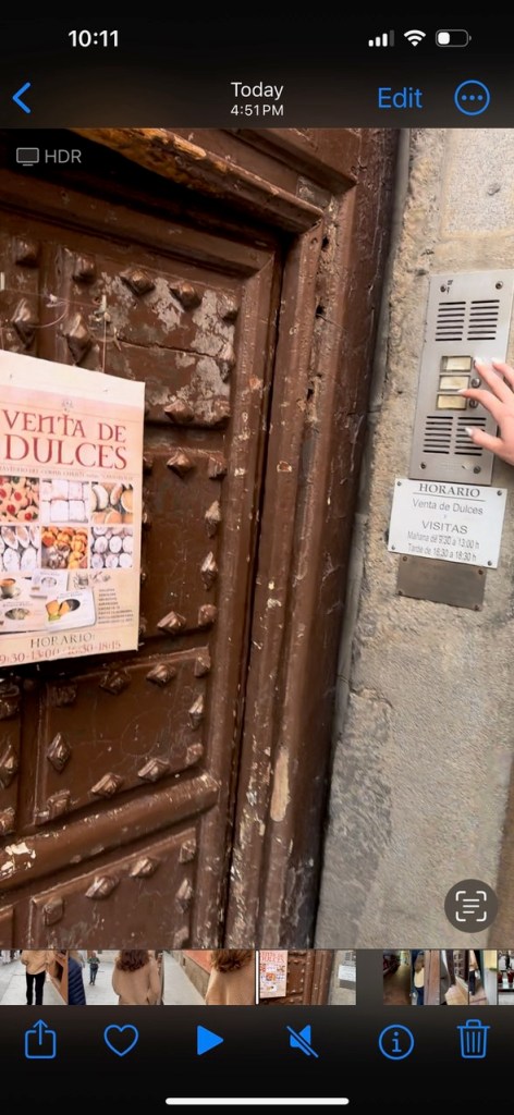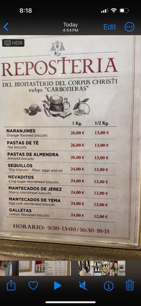 Just one thing to do: walk to get the nun cookies. So we did. And what an experience. You walk up to a wooden door. You go through into a dark hallway, walk a bit into a slightly brighter room with a partitioned lazy Susan sticking through the wall. You place money for the cookies you want on the lazy Susan which you then spin around and when it come back, there are cookies. Like magic. Unless, like my daughter you try a short the nuns by a Euro and they yell at you. In fairness, the cookies she wanted were cheaper, but not available. So the Euro short wasn’t intentional. The cookies, upon sampling later, were good, but a bit dry for taste.