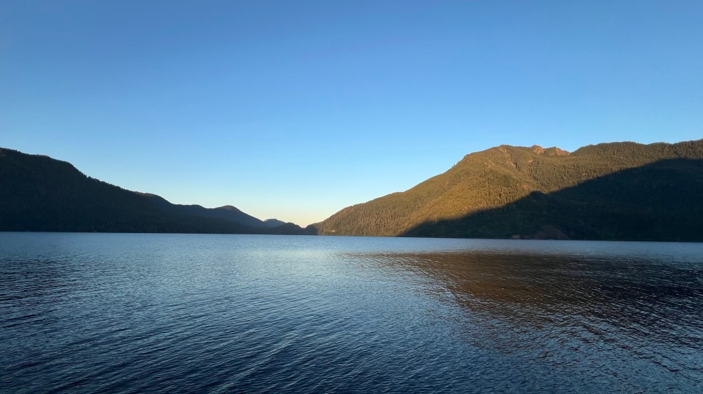 Lake Crescent is a beautiful place. The steep mountain drops into the water with limited construction on the banks made it look pristine. Even in the waning light you could tell the water was an otherworldly blue.