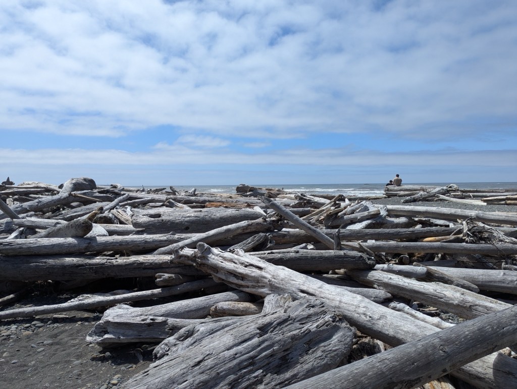 I had seen pictures of the beach and I’d seen the Oregon coast many years ago, but this was stunning. The rocky beach (plenty for skipping and my grandfather would still be there challenging 10 year old me to skip them all…) and small misty chunks of rock and trees just off the beach made it something out of a dream. The beach itself was covered with “driftwood” from the forests, which exactly what it sounds. Spoiler alert: some pieces were huge.