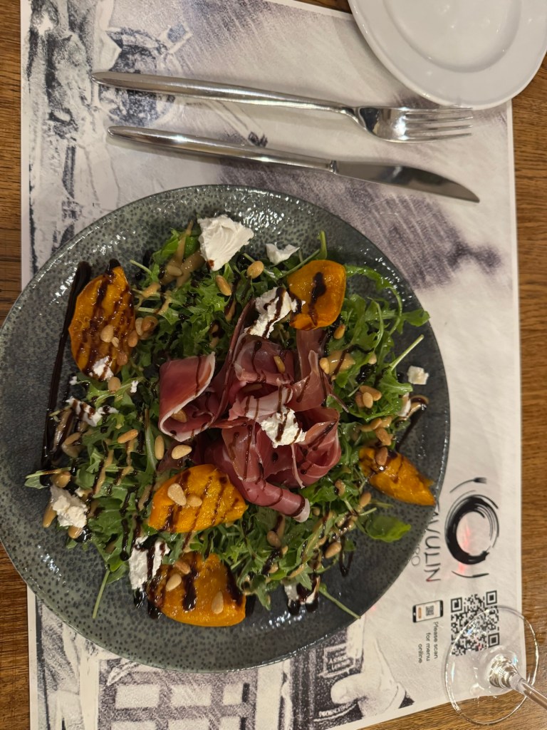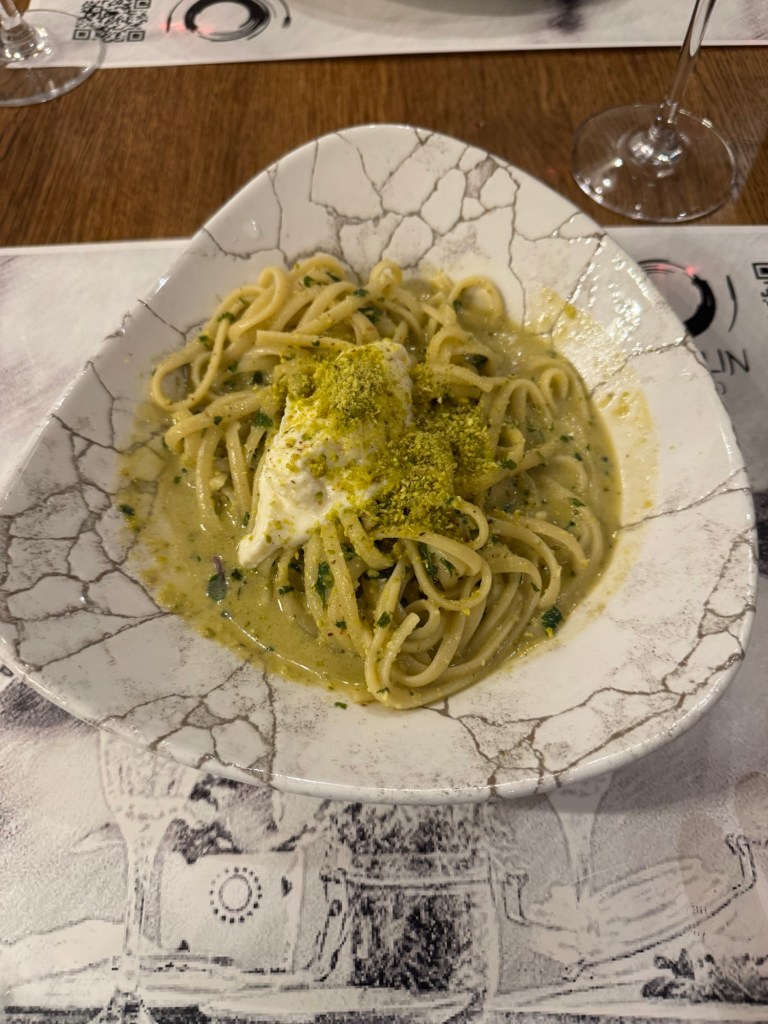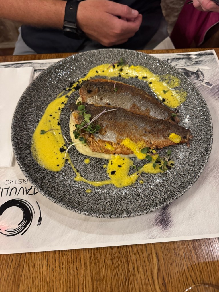 Bistro Tavulin stood out when we were looking for restaurants before we arrived and the food did not disappoint. Between the two of us we had pumpkin soup, apricot prosciutto salad, pistachio pesto linguine, and sea bass. Everything was fantastic. The apricot prosciutto salad might be one of the best dishes I’ve ever had. I’m not just saying that because it was my third meal of the day featuring prosciutto, I’m not even really a fan, but the salad was exquisite. Oh, and another bottle of wine. Of course.