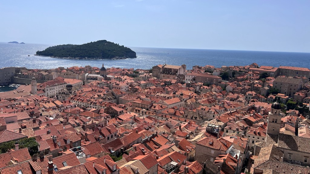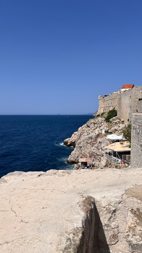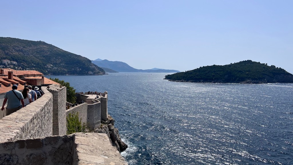 After walking through the Pile Gate, we climbed up steep steps to the top of the wall. The view was incredible and each corner, or new set of stairs brought a new embattlement and view of the city and the Adriatic. The Old City is a gorgeous terrain of terracotta roofs and gothic buildings dating back to the 12th century. A lot was destroyed in an earthquake in the late 1600s, but what remains still blends in with what was rebuilt around it. As we walked around the walls, roughly a mile and a third, we were surprise by how tall and thick the walls were in places. The pictures will never do it justice, and even having seen them from viewpoint of the Lannisters in Game of Thrones as they look out from King’s Landing, they looked surprisingly foreboding and not something invaders from the sea would want to take lightly.